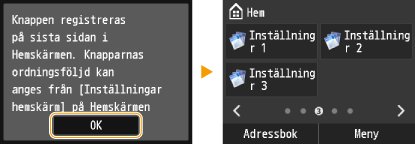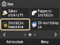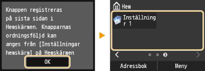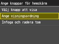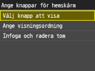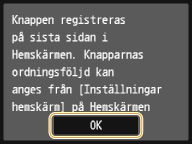 Om skärmen Hem är full och inga fler inställningar kan registreras, tar du antingen bort tomma utrymmen med <Inställn. hemskärm> på skärmen Hem, eller också tar du bort registrerade knappar. Ta bort knappar
