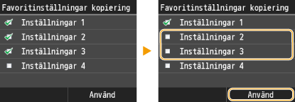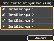 Markera kryssrutan för alla inställningar som ska visas på skärmen Hem och tryck sedan på <Använd>.
