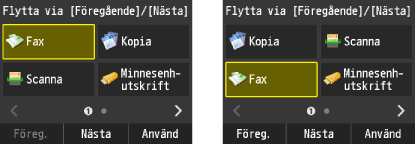 Om du håller länge på <Föreg.>/<Nästa> flyttas knappen framåt eller bakåt kontinuerligt.