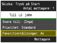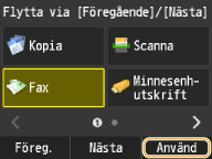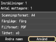 Dina vanligaste inställningar för <Scanna> kan bara registreras för e-post, delade mappar och filservrar. Lägga till knappar från <Inställn. hemskärm>
