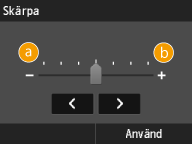 Du kan rendera suddig text och suddiga linjer och göra fotografier mer attraktiva. Öka skärpan för att skärpa suddig text och suddiga linjer, och minska skärpan för att förbättra tidskriftsfoton.
