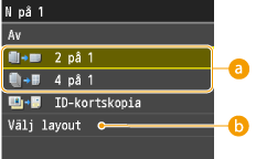 , men dokumentets kanter kanske inte kopieras om du ökar det.<2 på 1>/<4 på 1> är inte tillgängligt om du använder <Radera kant> och <ID-kortskopia>.