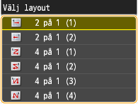 Du kan kopiera två eller fyra dokument på ett enstaka ark med minskad storlek. Detta minskar antalet sidor vilket gör att du sparar papper.