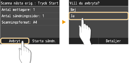 Tryck på <Avbryt> på skärmen när faxet skickas.