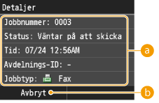 . Du kan också avbryta faxsändningen när du har kontrollerat faxstatus.