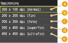 <Fax>  <Upplösning>  Tryck på upplösningen
