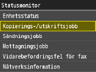 ![]() <Status kop./utskr.jobb>Visar en lista med de dokument som bearbetas eller kopieras eller som väntar på att bearbetas.