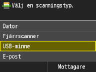 Skannade data sparas på USB-minnet.