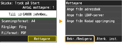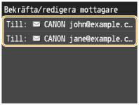 Om du vill ta bort mottagare utan att visa en lista med mottagareInnan du trycker på <Bekr./Redigera> i steg 1 kan du trycka på