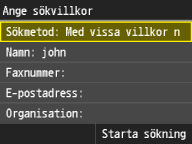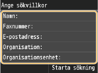 Personnamn, faxnummer, e-postadresser, organisationsnamn och avdelningsnamn är tillgängliga kriterier vid sökning efter mottagare. Flera sökvillkor kan anges samtidigt.