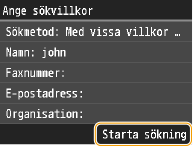 Om autentiseringsskärmen visas när du trycker på <Starta sökning> anger du användarnamnet på enheten och lösenordet som registrerats i LDAP-servern och sedan trycker du på <Använd>.