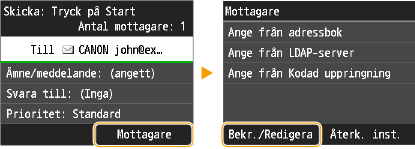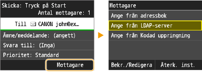 Ange mottagare i en LDAP-server (e-post)