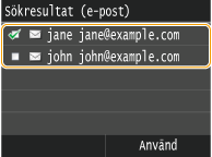 Markera kryssrutan för mottagaren och tryck på <Använd>.