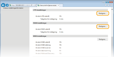 Klicka på [Redigera...] i [LPD-inställningar] eller [RAW-inställningar].
