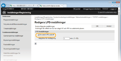 Markera kryssrutan för att skriva ut via LPD. När LPD-utskrift inte används avmarkerar du kryssrutan. [Använd RAW-utskrift]