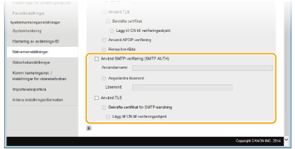 Ställa in SMTP-autentisering eller krypterad kommunikation med SMTP-servern