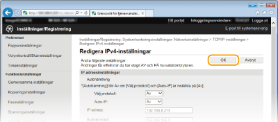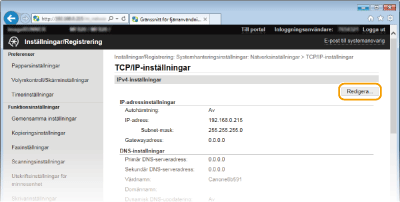 Klicka på [Redigera...] i [IPv4-inställningar].