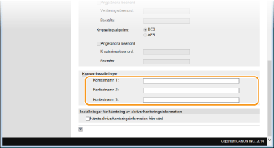 Ange upp till 32 alfanumeriska tecken för kontextnamnet. Du kan registrera upp till tre namn. |