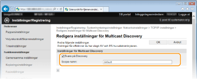 Klicka på [Redigera...] i [Inställningar för Multicast Discovery].