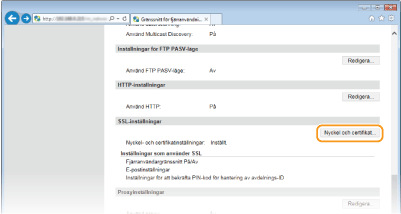 Klicka på [Nyckel och certifikat...] i [TLS-inställningar].