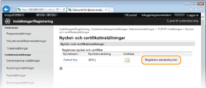 Klicka på [Registrera standardnyckel] till höger om det nyckelpar som du vill använda.