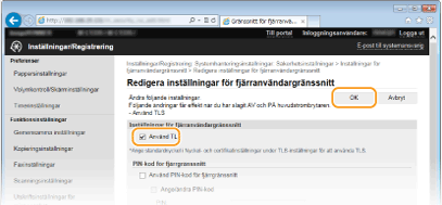 Klicka på [Säkerhetsinställningar]  [Inställningar för fjärranvändargränssnitt].