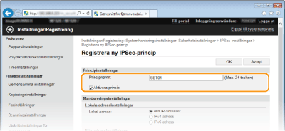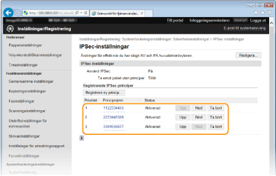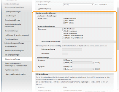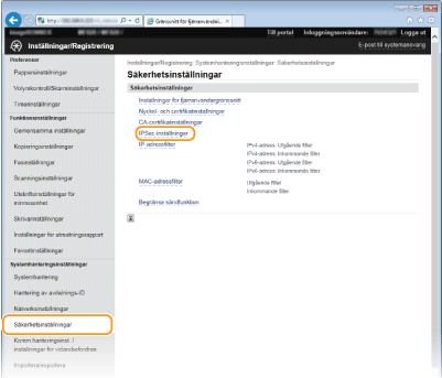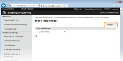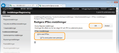 Du kan aktivera eller inaktivera IPSec-kommunikation från <Meny>. Använd IPSec