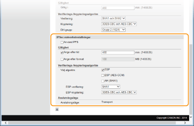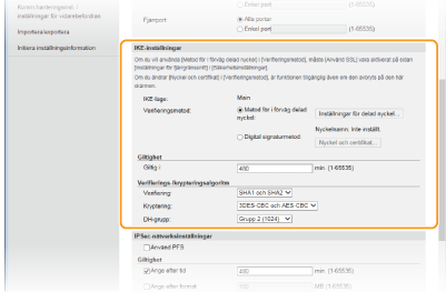 Ange inställningar för [Giltig i] och [Verifiering]/[Kryptering]/[DH-grupp].