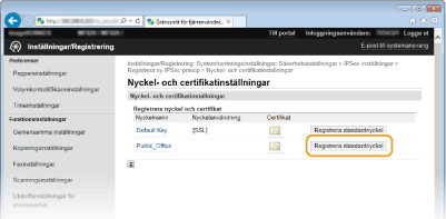Klicka på [Registrera standardnyckel] till höger om ett nyckelpar som du vill använda.