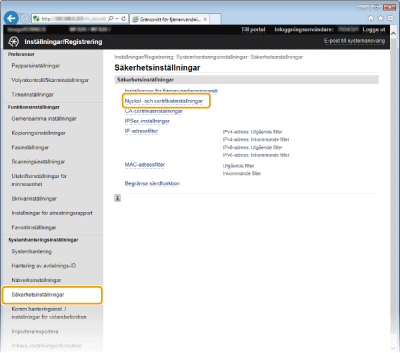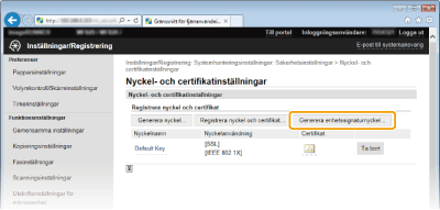 [Nyckel- och certifikatinställningar].