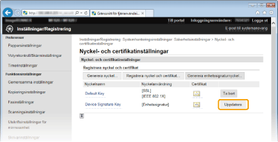 Klicka på [<Uppdatera>] till höger om nyckeln.