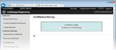 Klicka på [Certifikatverifiering].