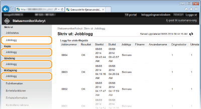 Klicka på [Jobbnummer] i pausade och säkra dokument om du vill visa detaljerad information. Du kan kontrollera användarnamn och sidantal för utskrivna dokument.