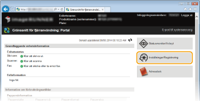 Starta Fjärranvändargränssnittet och logga in i systemansvarigsläge.
