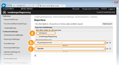 Du kan spara registrerade adressboksdata på datorn eller registrera sparade adressboksdata i enheten. Andra enheter kan importera registreringsinnehåll som exporterats från den här enheten och tvärtom*.