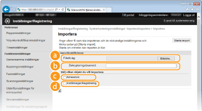 Markera kryssrutan om du vill importera inställningarna och registreringen.