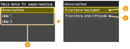 ). Automatiskt lådval aktiveras alltid för utskrift på papper som matas från universalfacket.