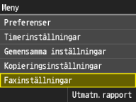 Alla faxinställningar visas med korta beskrivningar. Standardinställningarna markeras med ett kors (