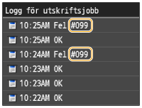Om utskriften misslyckas eller om du inte kan skicka eller ta emot fax eller skannade dokument, eller om ett annat fel inträffar, visas detta fel i en rapport eller i ett meddelande på <Statusmonitor> som ett tresiffrigt tal (felkod). Kontrollera följande för att hitta orsaker och lösningar för respektive felkod. Om du vill veta hur du skriver ut en felrapport och information i rapporten går du till