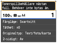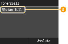 <Nästan full>: Tonerspillbehållaren är nästan full. Du bör byta behållare mot en ny.
