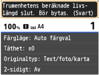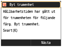 När "XXXX" visas i beskrivningen nedan anges trumenhetsfärgerna svart, gul, magenta eller cyan i det aktuella meddelandet.