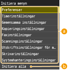 Om du vill initiera inställningarna i <Nätverksinställningar> och <Systemhanteringsinställningar> går du till Initiera systemhanteringsinställningar.