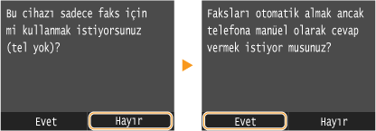 Alma modunu <Faks/Tel Oto Geçiş> olarak ayarlamak için