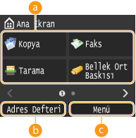 öğesine basılarak görüntülenir. İşlevlere erişmeye yönelik düğmeler Giriş Ekranında görüntülenir. Giriş Ekranı düğmeleri ekleyebilir/silebilir ve bunları kullanımları daha kolay olacak şekilde yeniden düzenleyebilirsiniz.