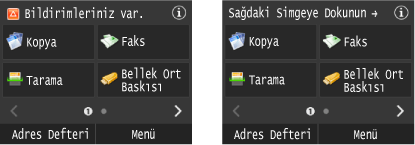 ![]() <Bildirimleriniz var.> veya <Sağdaki Simgeye Dokunun ->> Görüntülendiğinde