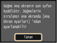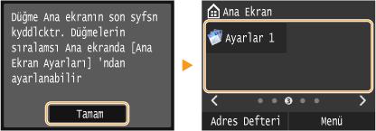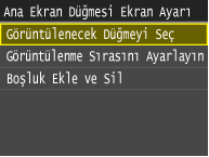 <Tercihler> <Ekran Ayarları> <Ana Ekran Düğmesi Ekran Ayarları> öğesini de kullanabilirsiniz. |