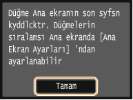 Giriş Ekranı doluysa ve daha fazla ayar kaydedilemiyorsa, ya Giriş Ekranında <Ana Ekran Ayarları> ile silerek yer boşaltın veya kayıtlı düğmeleri kaldırın. Düğmeleri Silme