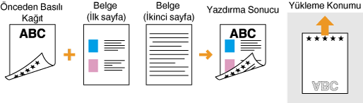 Bu bölümde, önceden basılı kağıtları, uygun yüzüne, uygun yönde yazdırılacak şekilde yükleme konusu açıklanmaktadır. Kağıt çekmecesine veya çok amaçlı tepsiye kağıt yüklemeye ilişkin genel yordamın açıklaması için bkz. Kağıt Çekmecesine Kağıt Yükleme veya Çok Amaçlı Tepsiye Kağıt Yükleme.