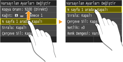 İmleci hareket ettirmek için / görüntülendiğinde imleci dokunup hareket ettirin.Değer aralığıGiriş kutusunun altında görüntülenen ( ) içindeki değerler, girilebilen değer aralığını gösterir.