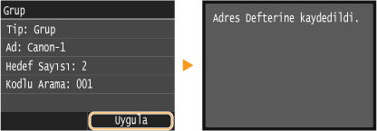 Sayı tuşlarını kullanarak adı girin ve <Uygula> öğesine dokunun.